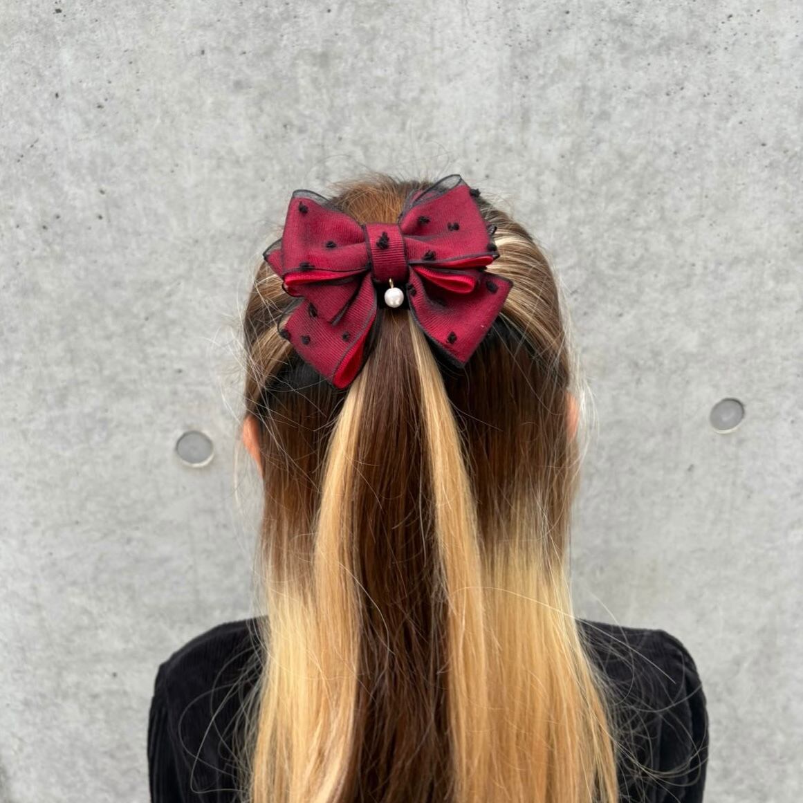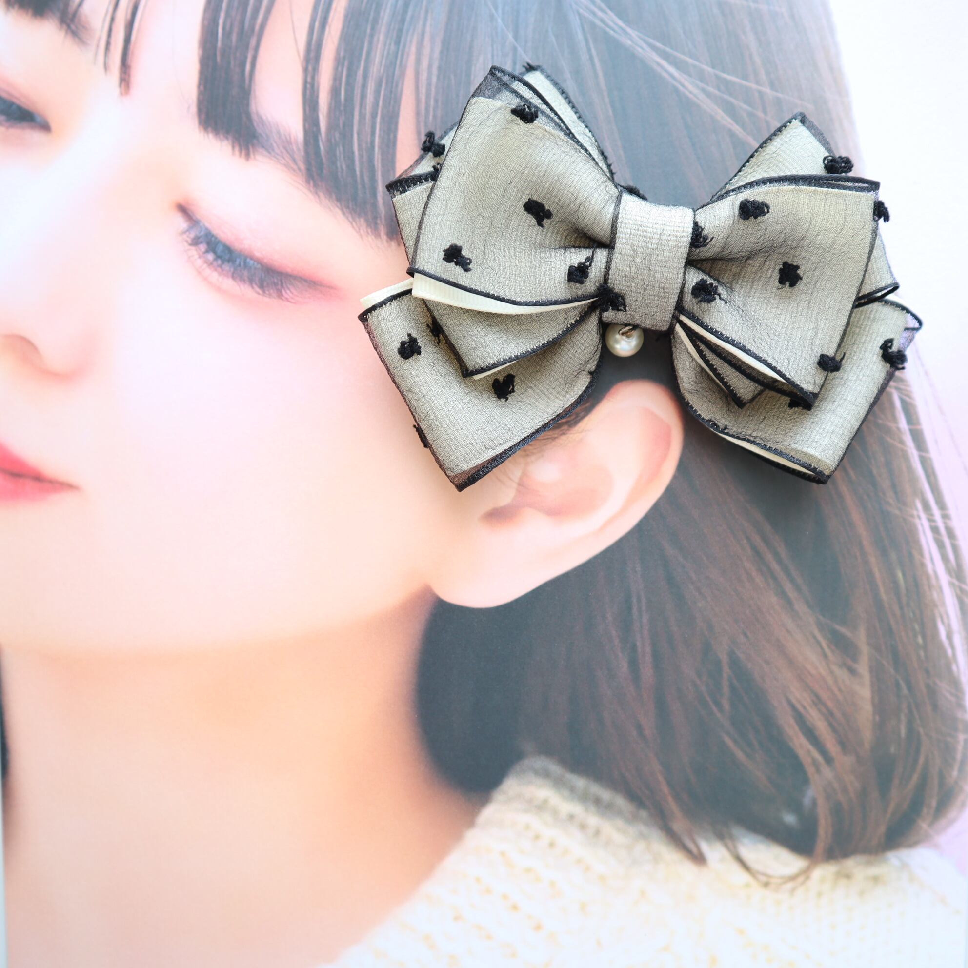 ドットレースパールリボン 大人 キッズ ヘアアクセサリー 地雷系 ヘアゴム