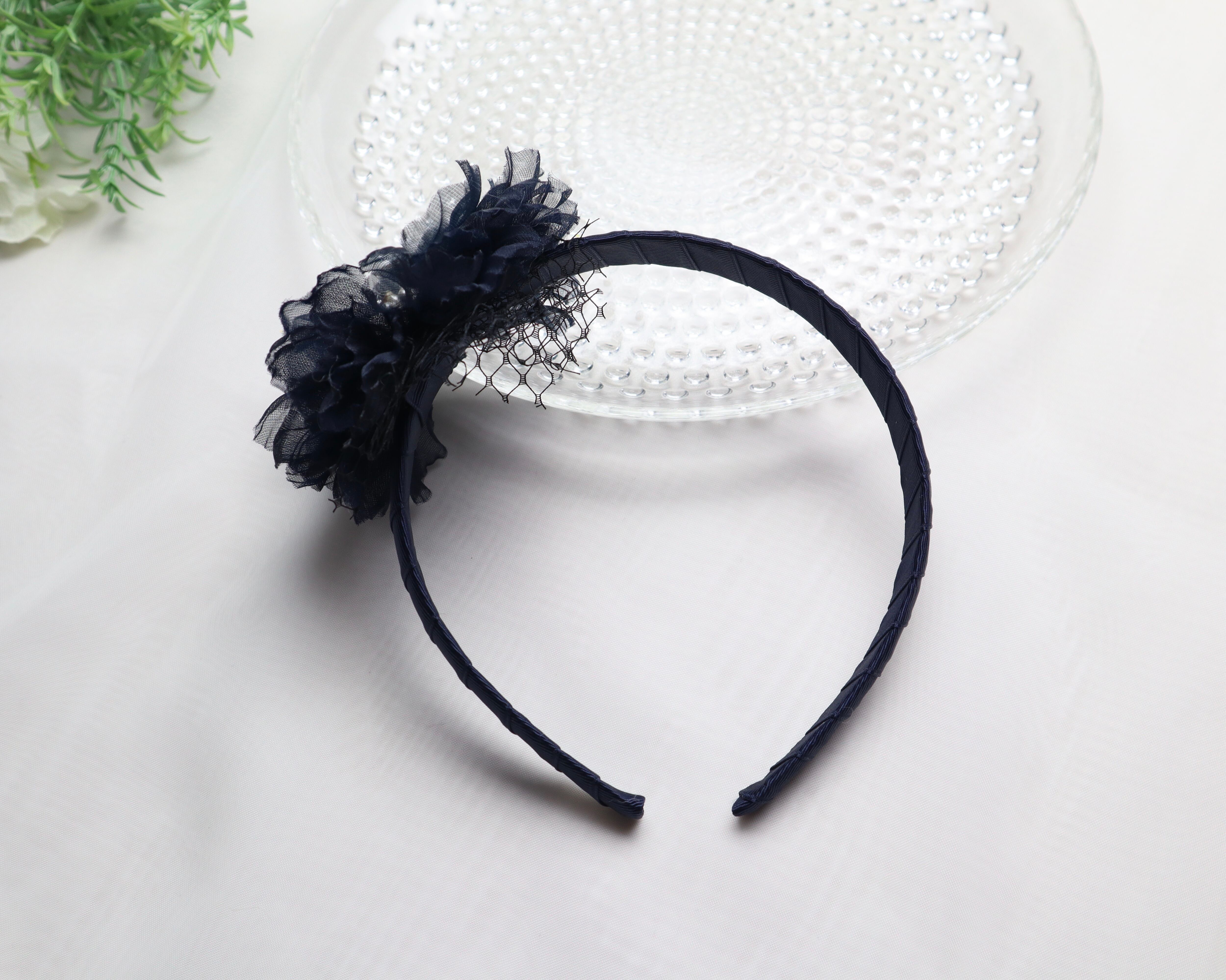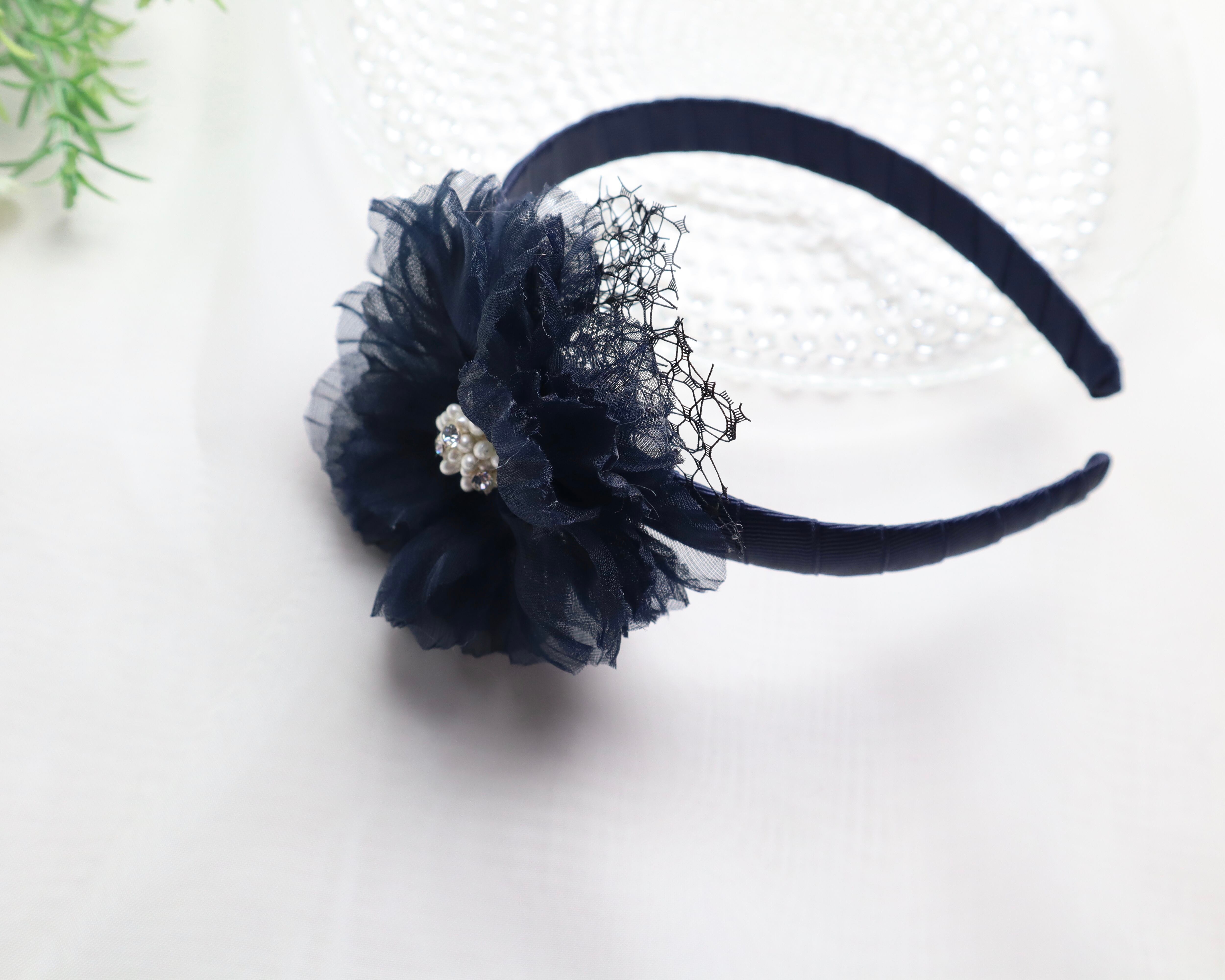 ☆キッズ☆クリスタルパールフラワーカチューシャ ネイビー