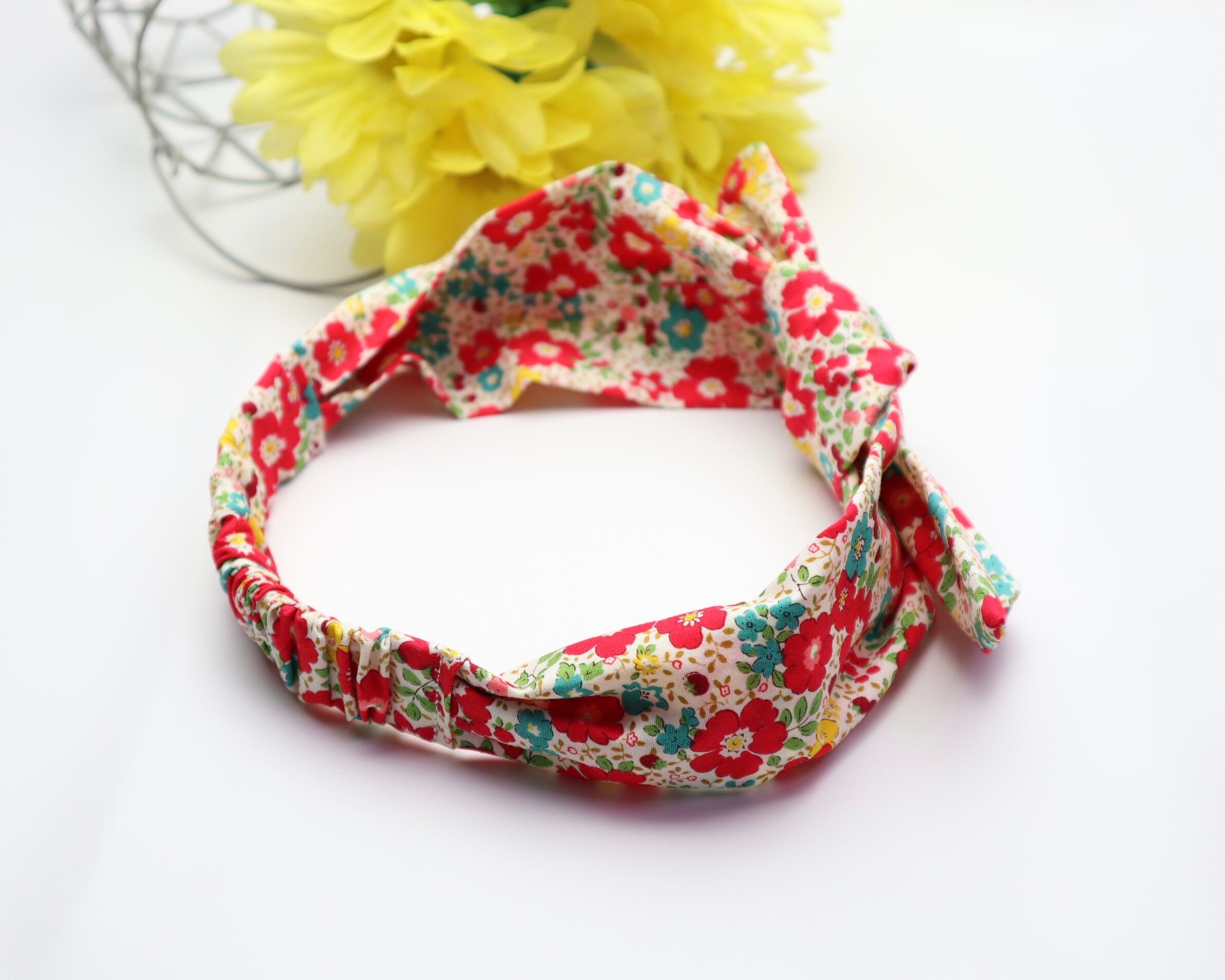 ☆キッズターバン・ジュニアターバン☆リバティ風リボンターバン レッド ヘアアクセサリー