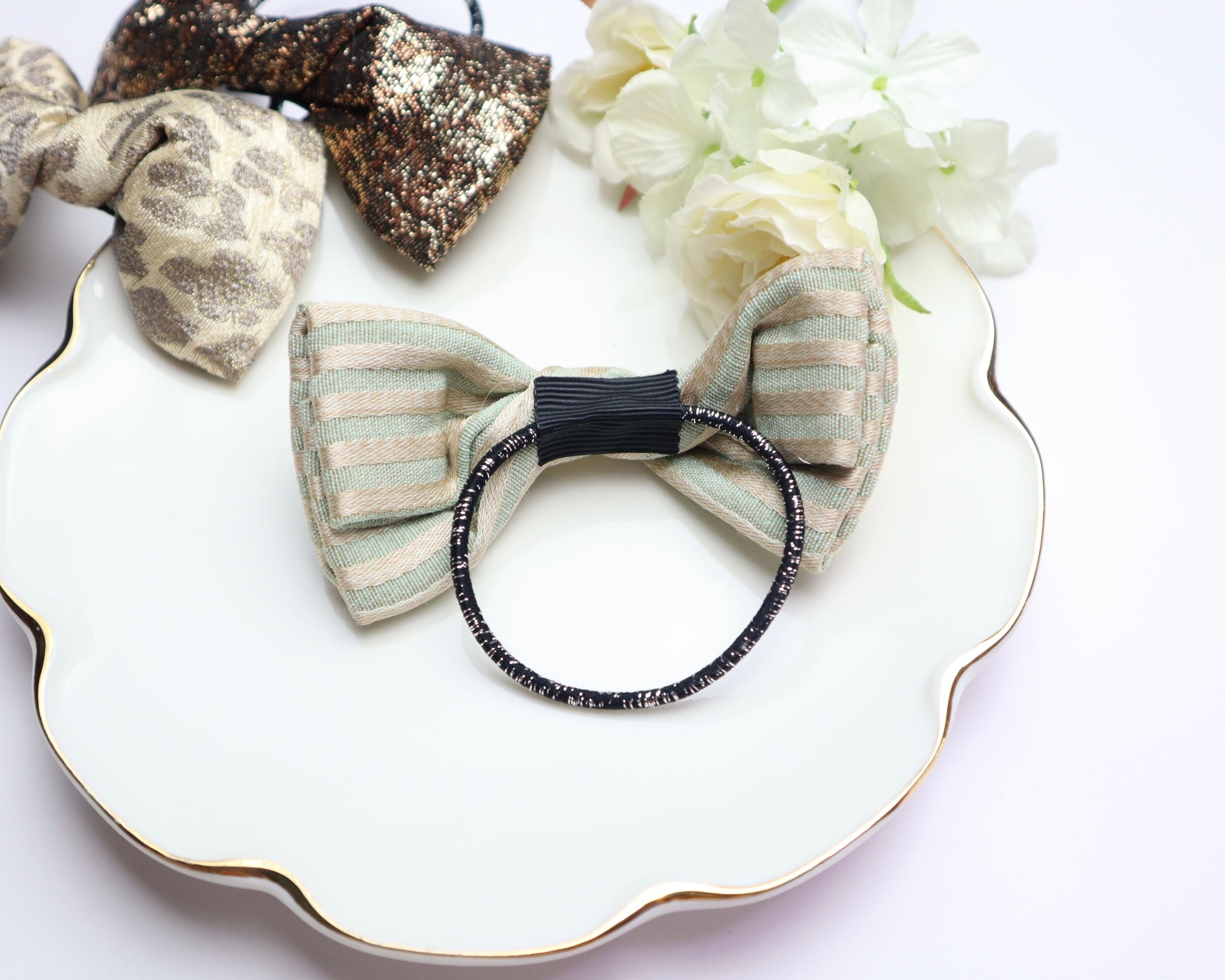 ☆ヘアゴム☆アンティーク調リボン ボーダー柄 ヘアアクセサリー 大人 キッズヘアアクセサリー