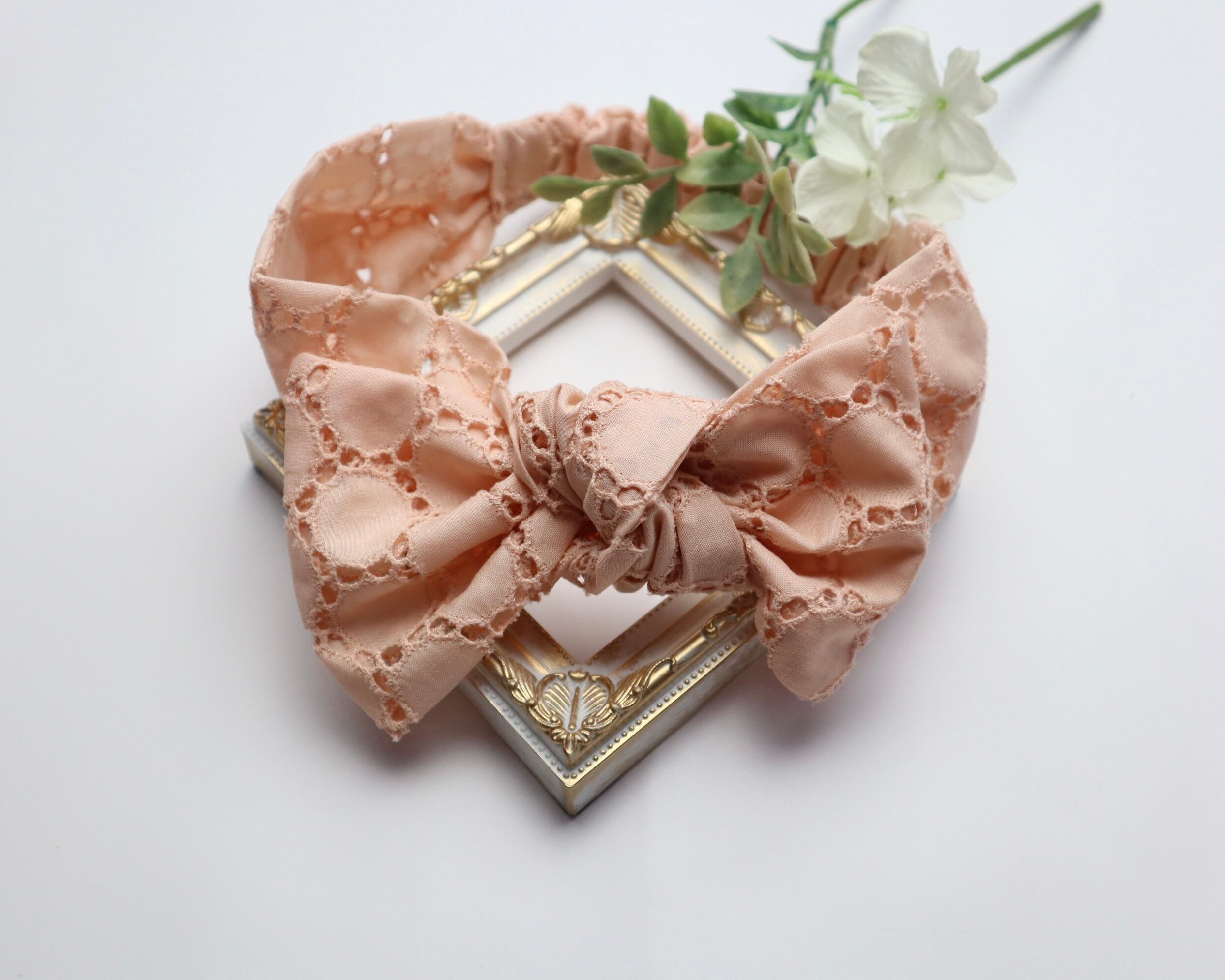 再販☆キッズ・ジュニアターバン☆ドットレースリボンターバン ピンク ヘアアクセサリー