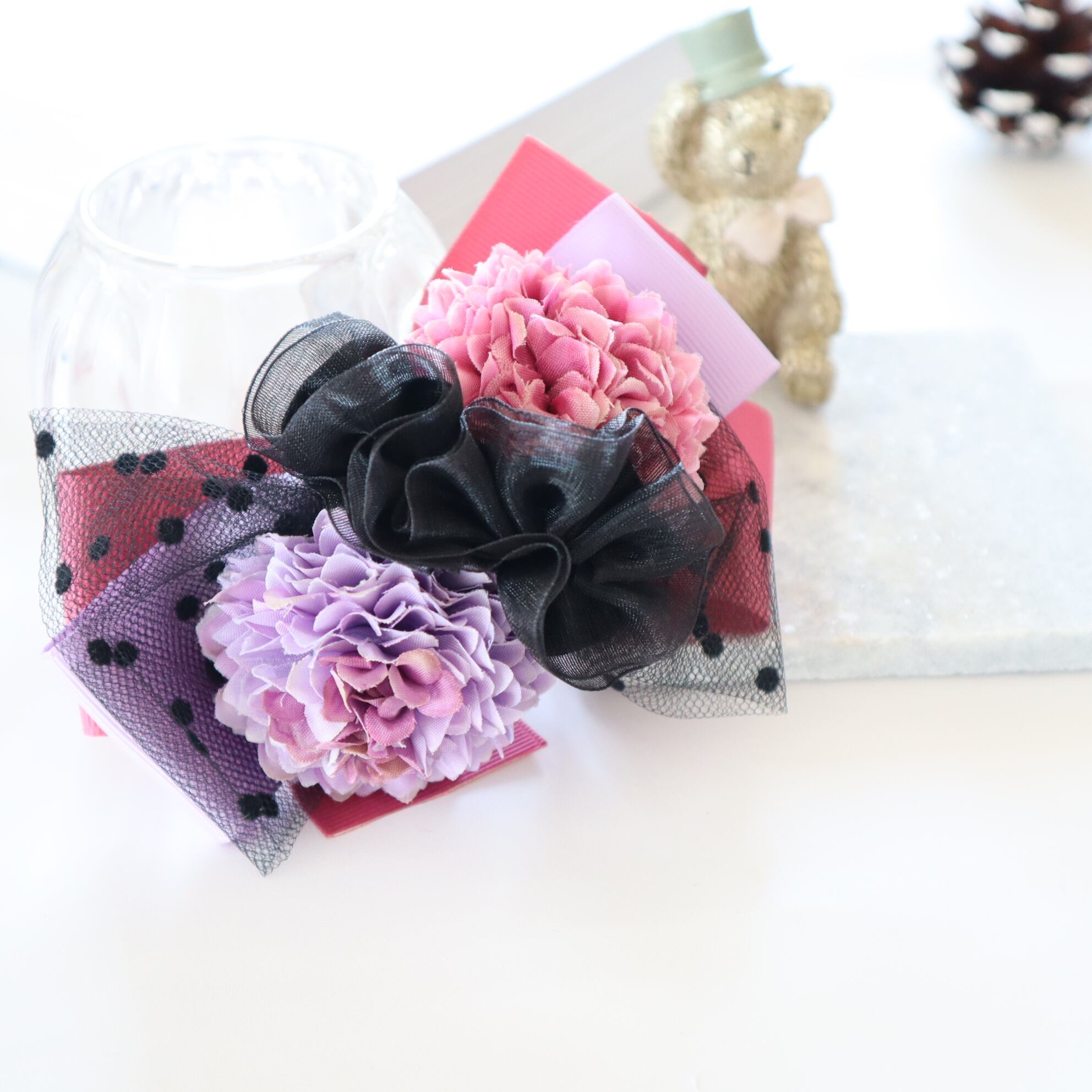 新色♡マカロンマムリボン ブラック ヘアクリップ 浴衣 夏祭り ドレス 髪飾り