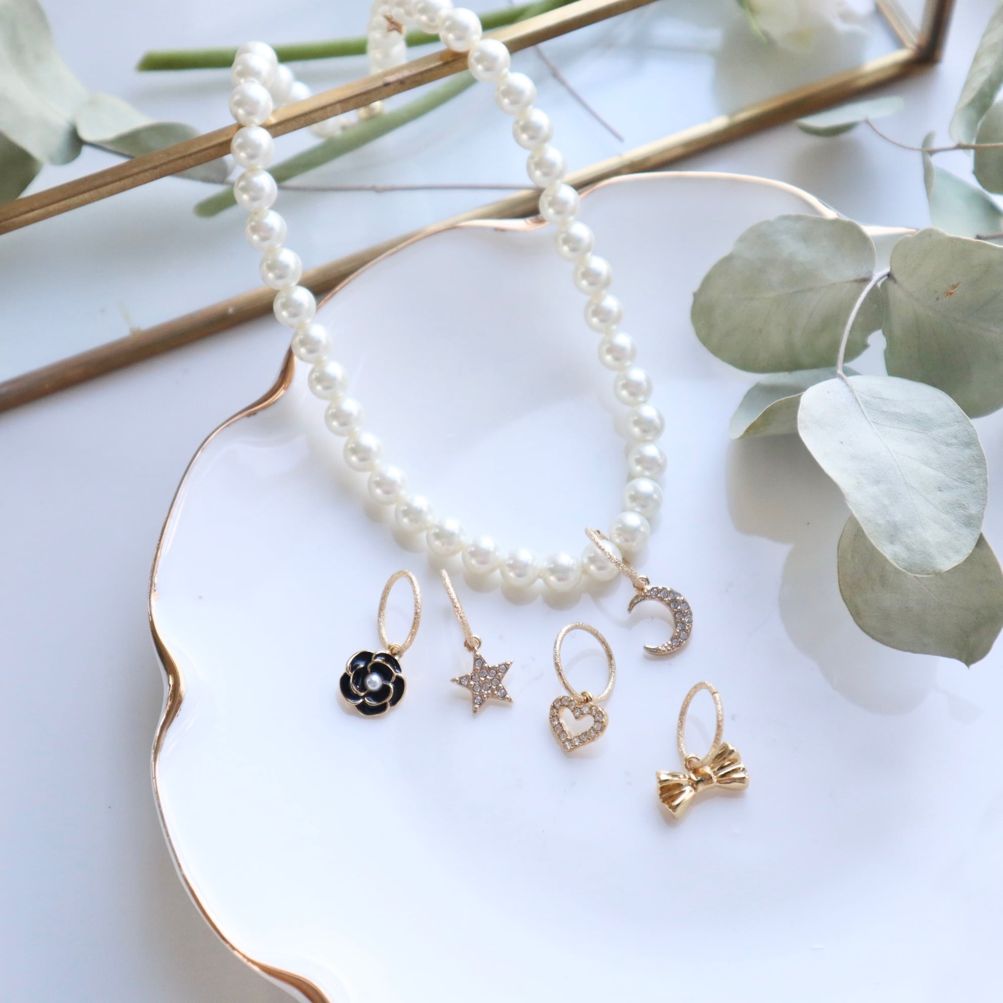 リボン 星 冠婚葬祭 ネックレス チャーム オプションチャーム カスタマイズ ハート クリスタル キッズパール