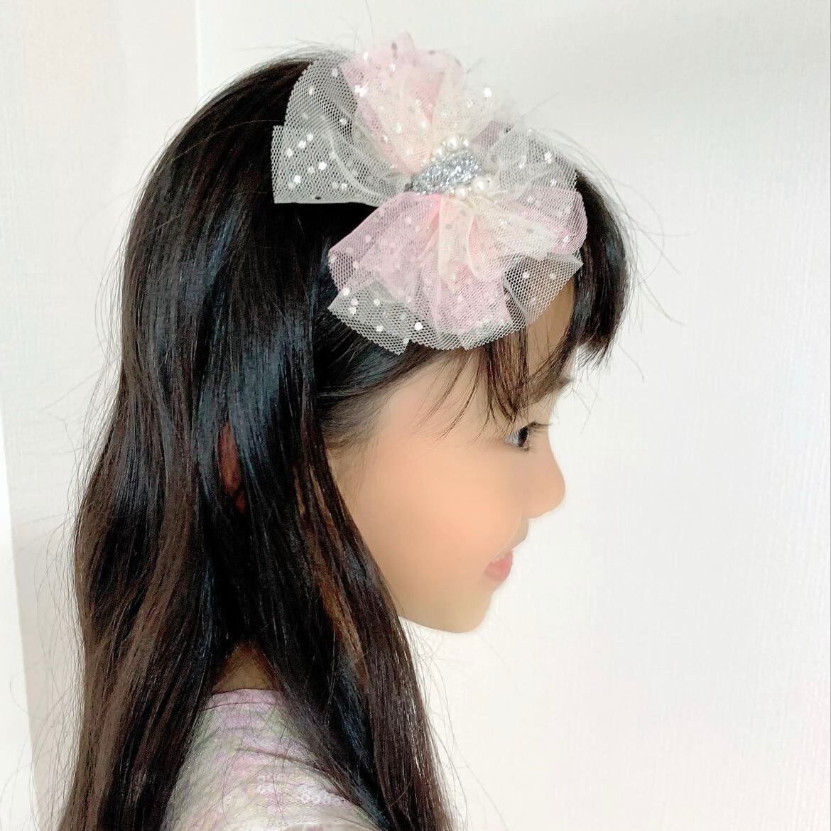 キッズヘア キッズ ヘアアクセサリー お洒落 可愛い 軽い ふわふわ リボン ラメ 姉妹 お揃い 映え 人気 トレンド 春 夏 秋 冬 ブライダル 結婚式 発表会 ゆめかわ シフォン 学校 幼稚園 チュール ドット パール
