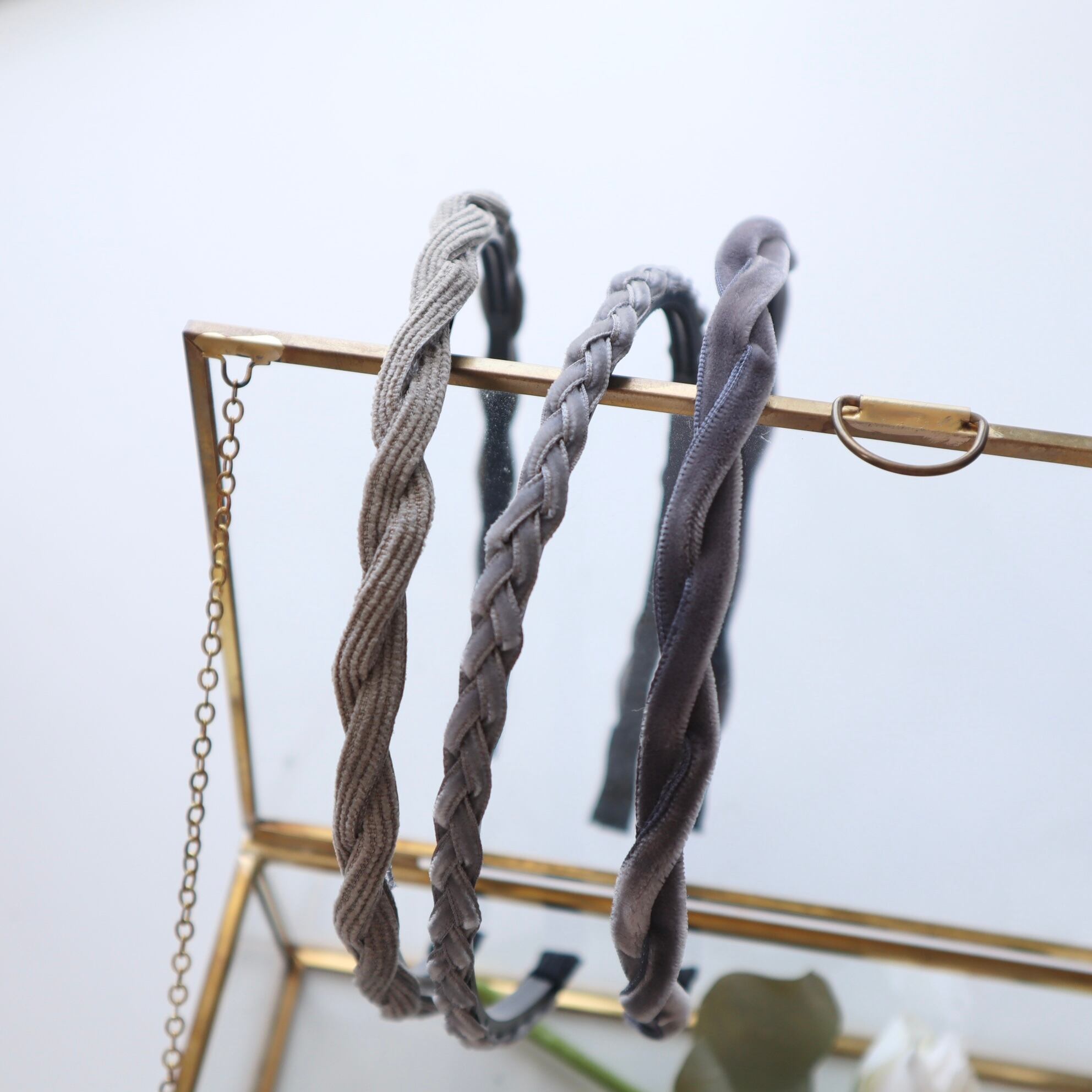 編み込みカチューシャ グレー ヘアアクセサリー 大人 ジュニア