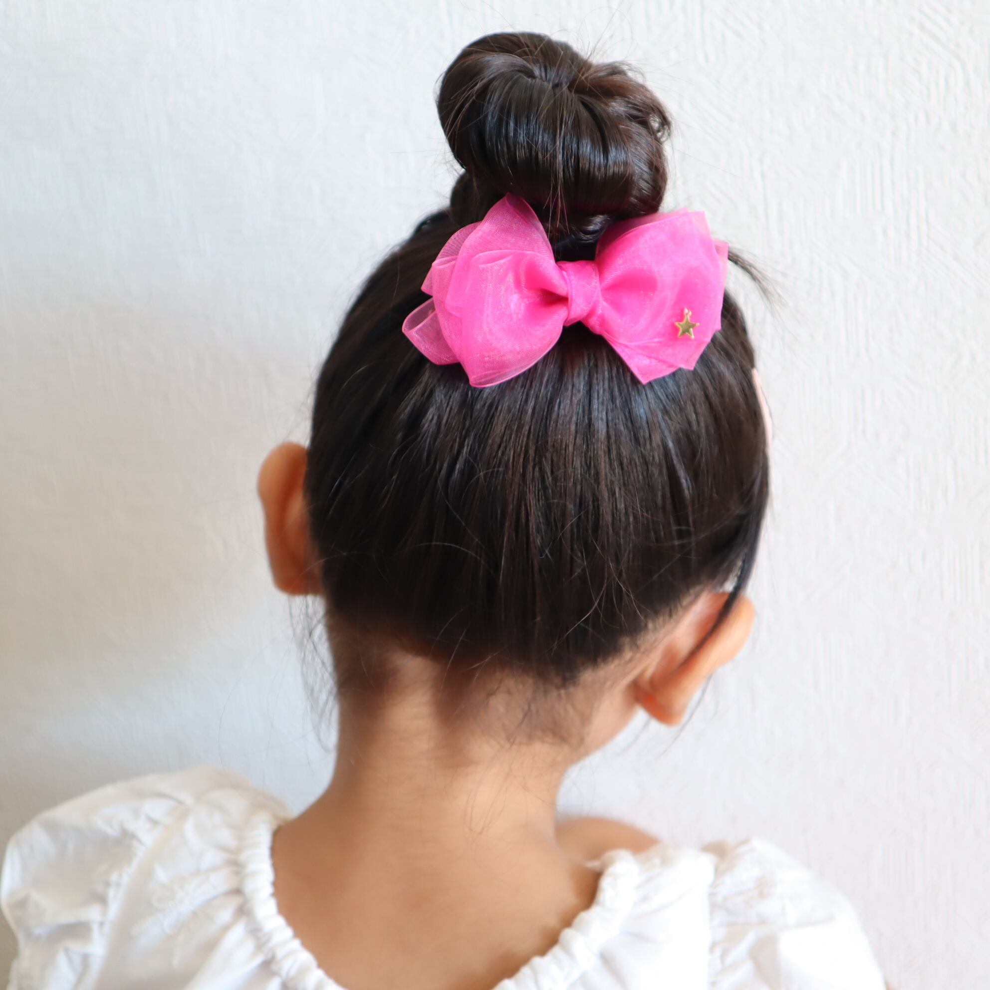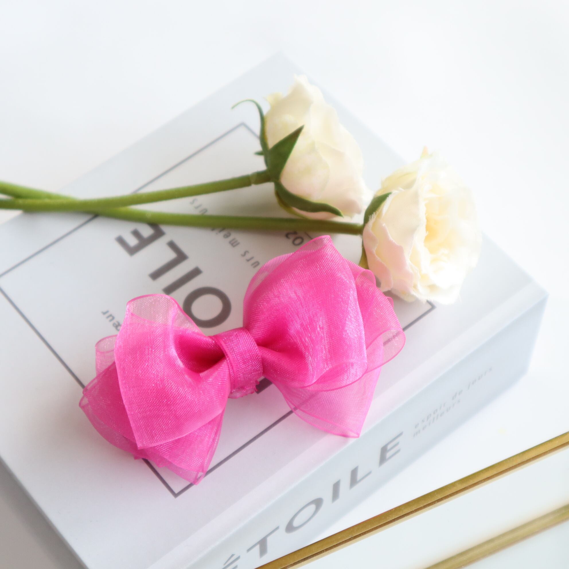 限定カラー☆ふわふわオーガンジーリボン アザレアピンク ヘアゴム ゆめかわ おしゃれ 可愛い ブライダル 発表会 ヘアクリップ