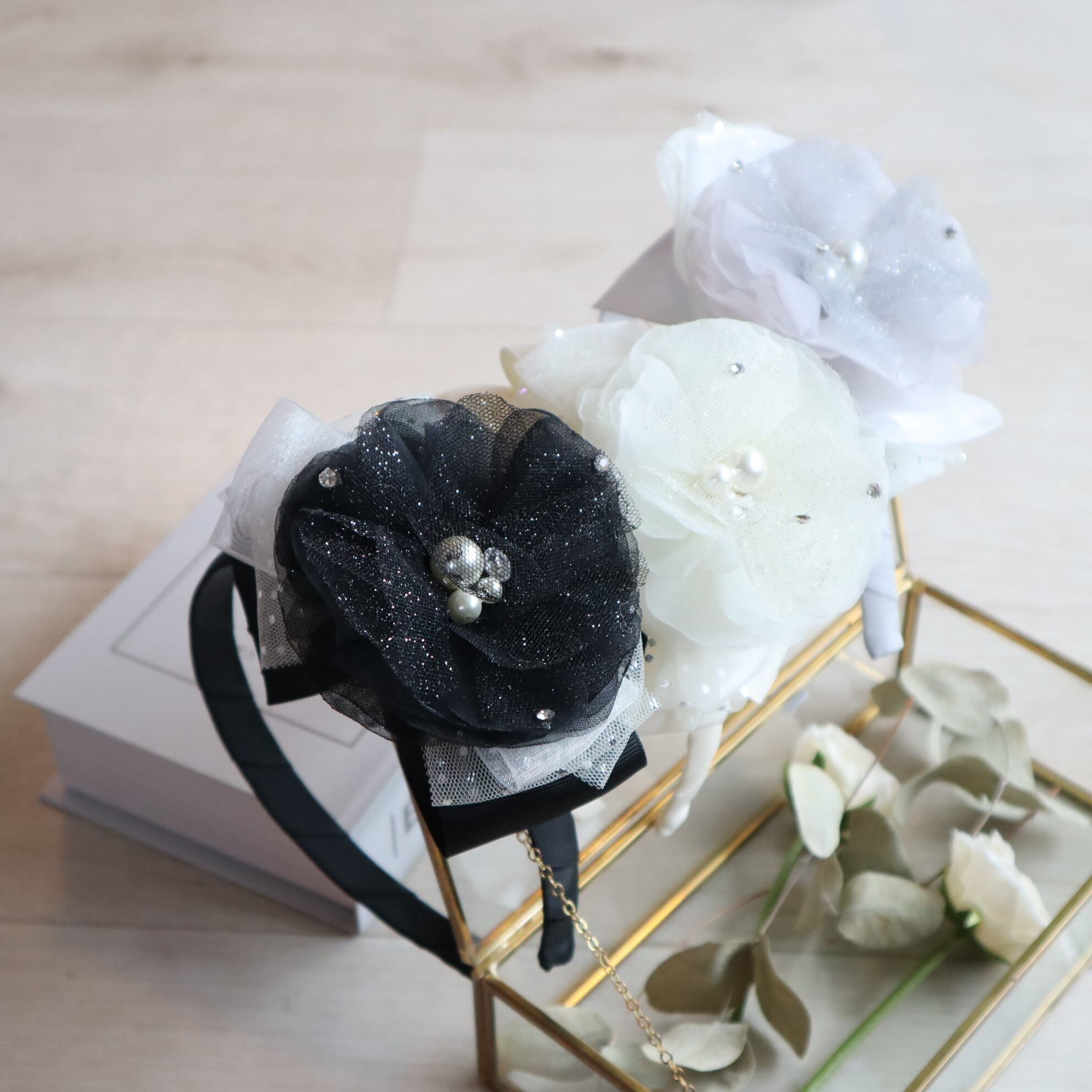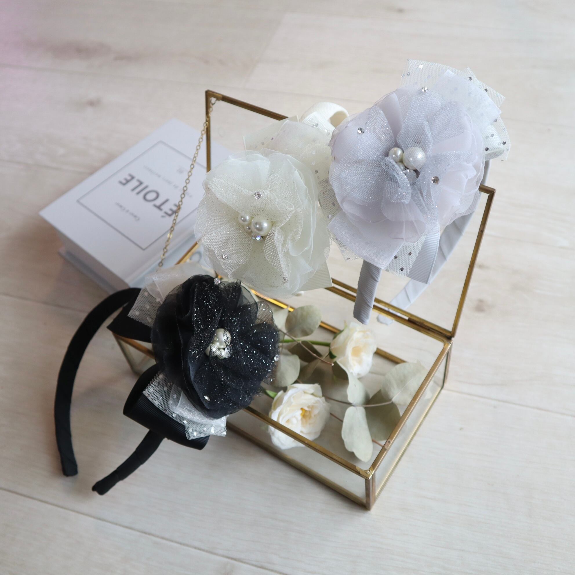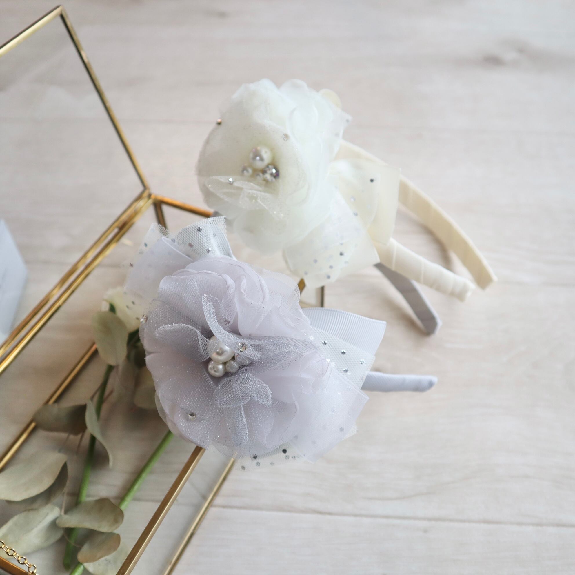 コサージュをつけるとより華やかさを引き立ててラグジュアリーなカチューシャに♡
