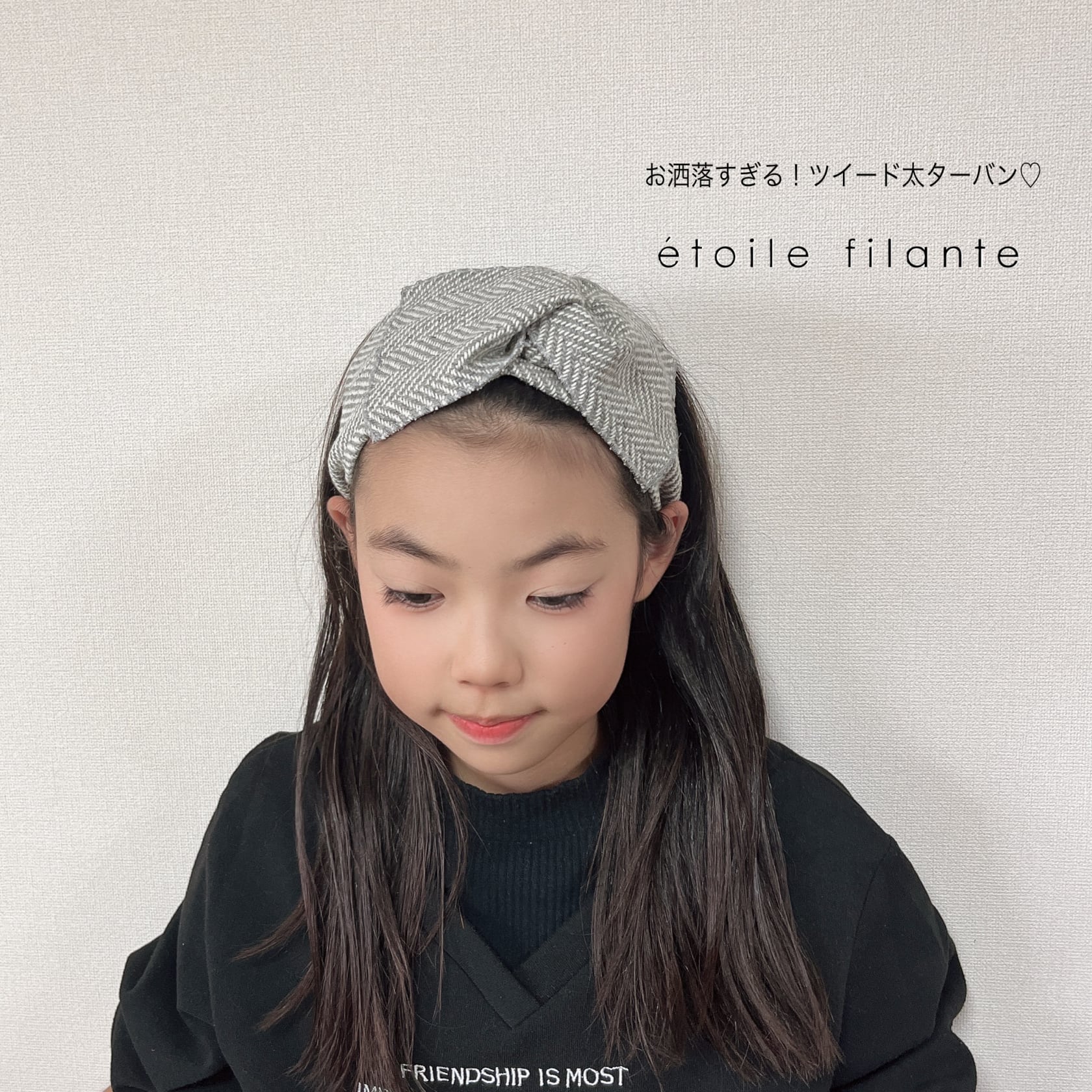 ☆大人ジュニアターバン☆ ツイード太ターバン ヘアバンド リボンターバン おしゃれ 大人 ジュニア