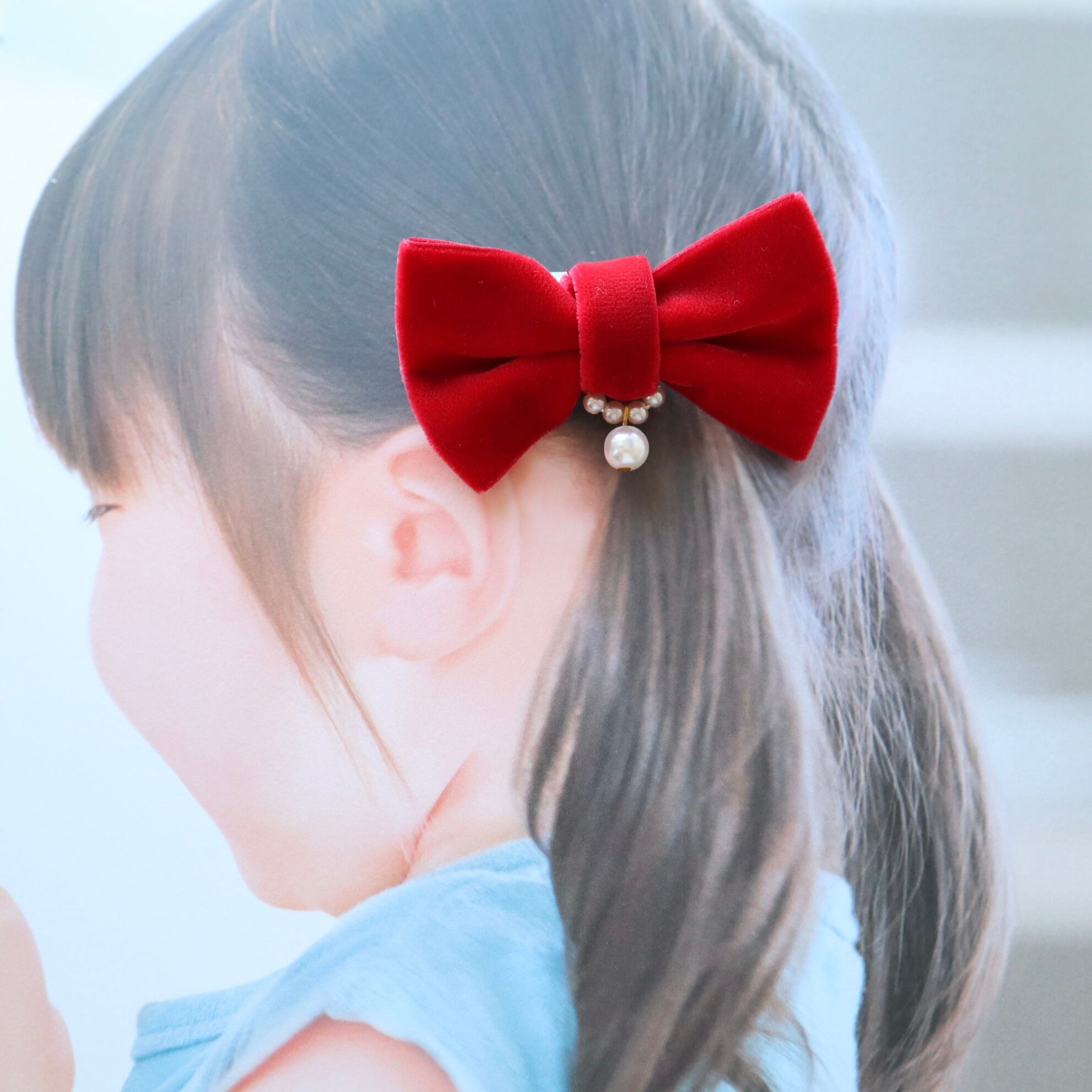 綺麗な赤いリボンに揺れるパールが特徴のツインリボン♡